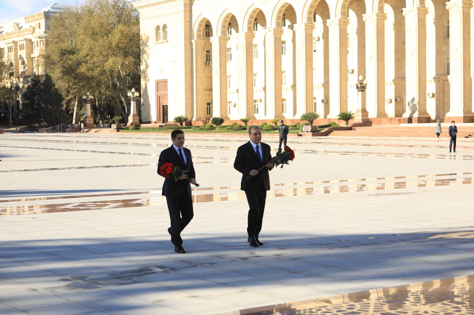 Qəbuldan əvvəl nazir və Gəncə Şəhər İcra Hakimiyyətinin başçısı Niyazi Bayramov Ümummilli Lider Heydər Əliyevin abidəsini ziyarət edib, önünə gül dəstələri düzüblər.