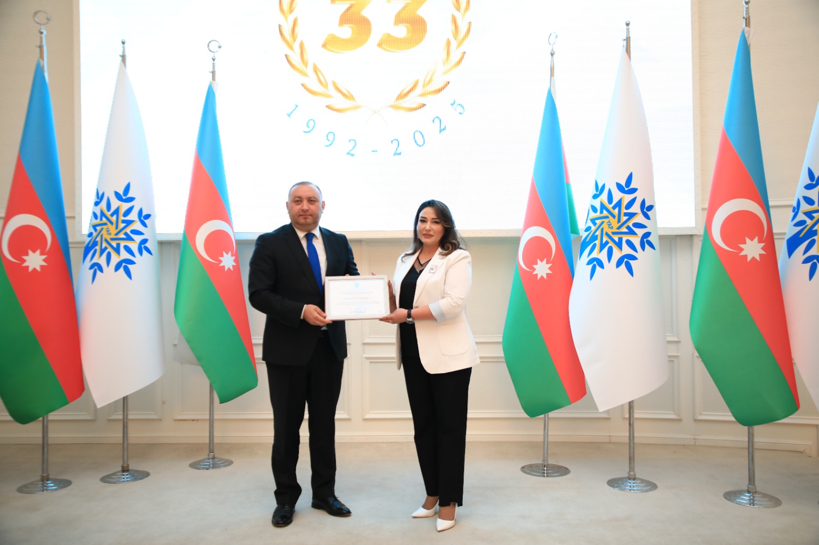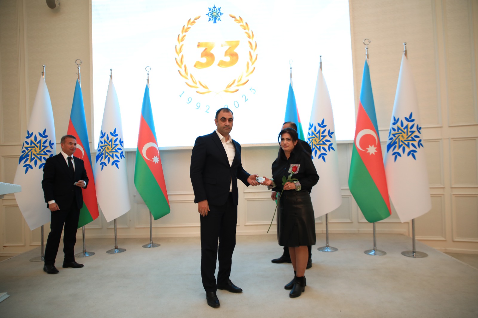 Çıxışlardan sonra Yeni Azərbaycan Partiyasının yaradılmasının 33-cü ildönümü münasibətilə partiyanın ictimai-siyasi həyatında fəallıq göstərən üzvlərə “Təşəkkürnamə”lər, partiyaya yeni qoşulan şəxslərə isə üzvlük vəsiqələri təqdim olunub.