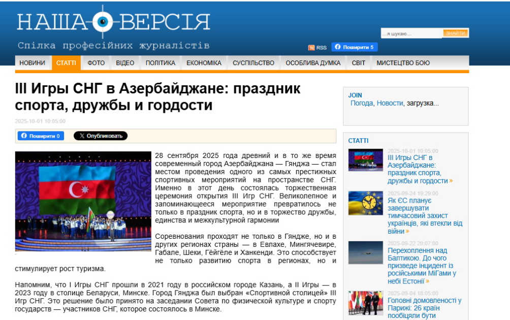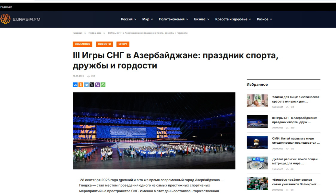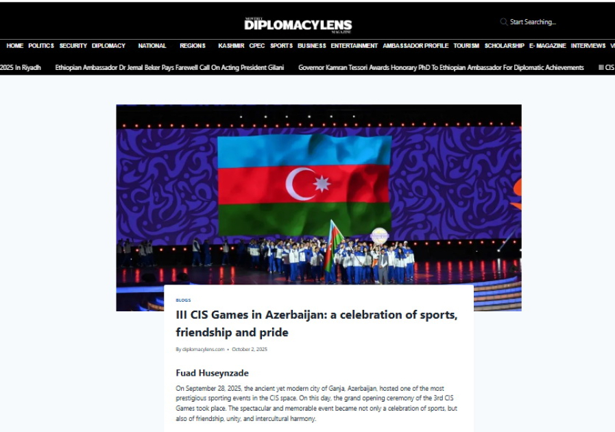Yazıda III MDB Oyunlarının təkcə idman yarışı kimi deyil, həmçinin mədəniyyətlərarası dialoqun və gənclər arasında dostluğun möhkəmləndirilməsi baxımından mühüm əhəmiyyət daşıdığı vurğulanır. Qeyd edilir ki, yarışlar yalnız Gəncə ilə məhdudlaşmır, eyni zamanda, Yevlax, Mingəçevir, Qəbələ, Şəki, Göygöl və Xankəndi şəhərlərində də təşkil olunur. Bu isə regionlarda idmanın inkişafına və turizmin canlanmasına müsbət təsir göstərir.