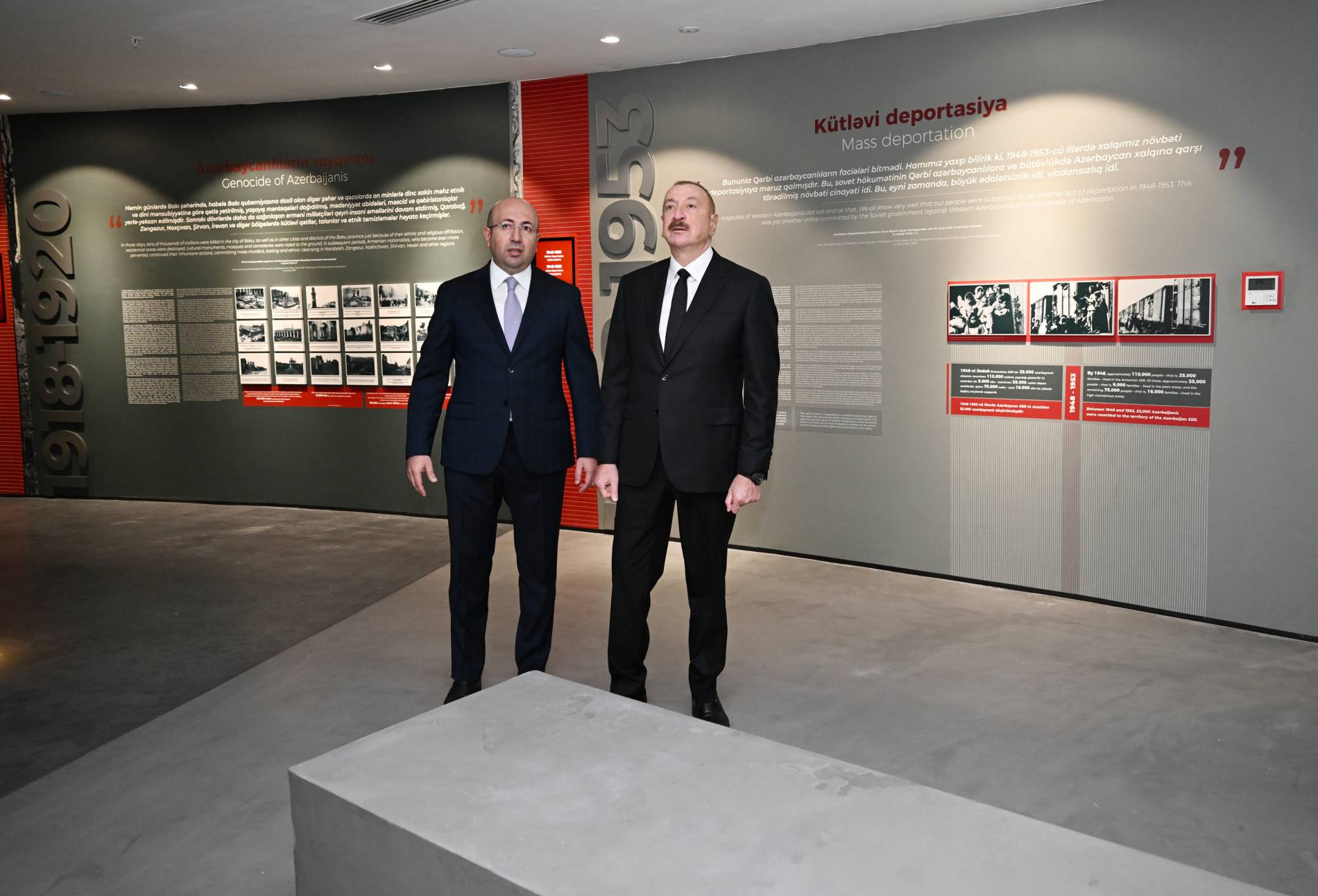 Ekspozisiya ziyarətçilərə əvvəlcə XX əsrin əvvəllərində baş verən faciələri, o cümlədən 1918-ci ilin mart soyqırımını tarixi faktlarla təqdim edir. Burada, həmçinin 1948–1953-cü illərdə soydaşlarımızın Qərbi Azərbaycandan kütləvi deportasiyası əks etdirilib. İnteraktiv bölmədə arxiv materialları, tarixi sənədlər və dağıdılmış mədəni irs nümunələri ilə tanış olmaq mümkündür.
