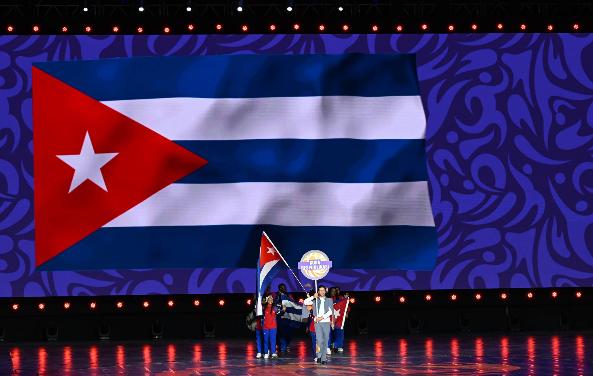 Açılış mərasimində Azərbaycan Bayrağını karateçimiz Asiman Qurbanlı və taekvondoçumuz Zemfira Həsənzadə arenaya gətiriblər.