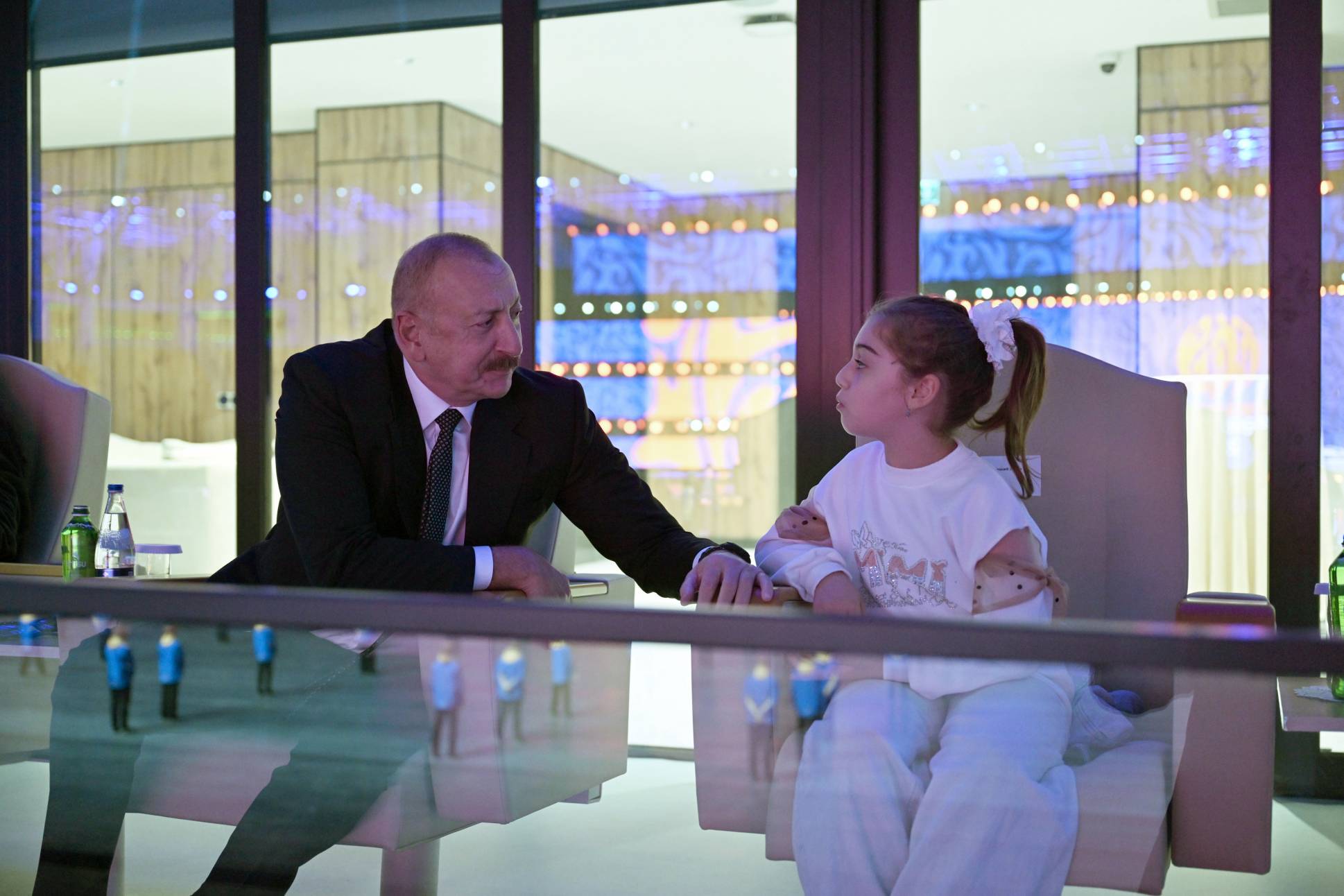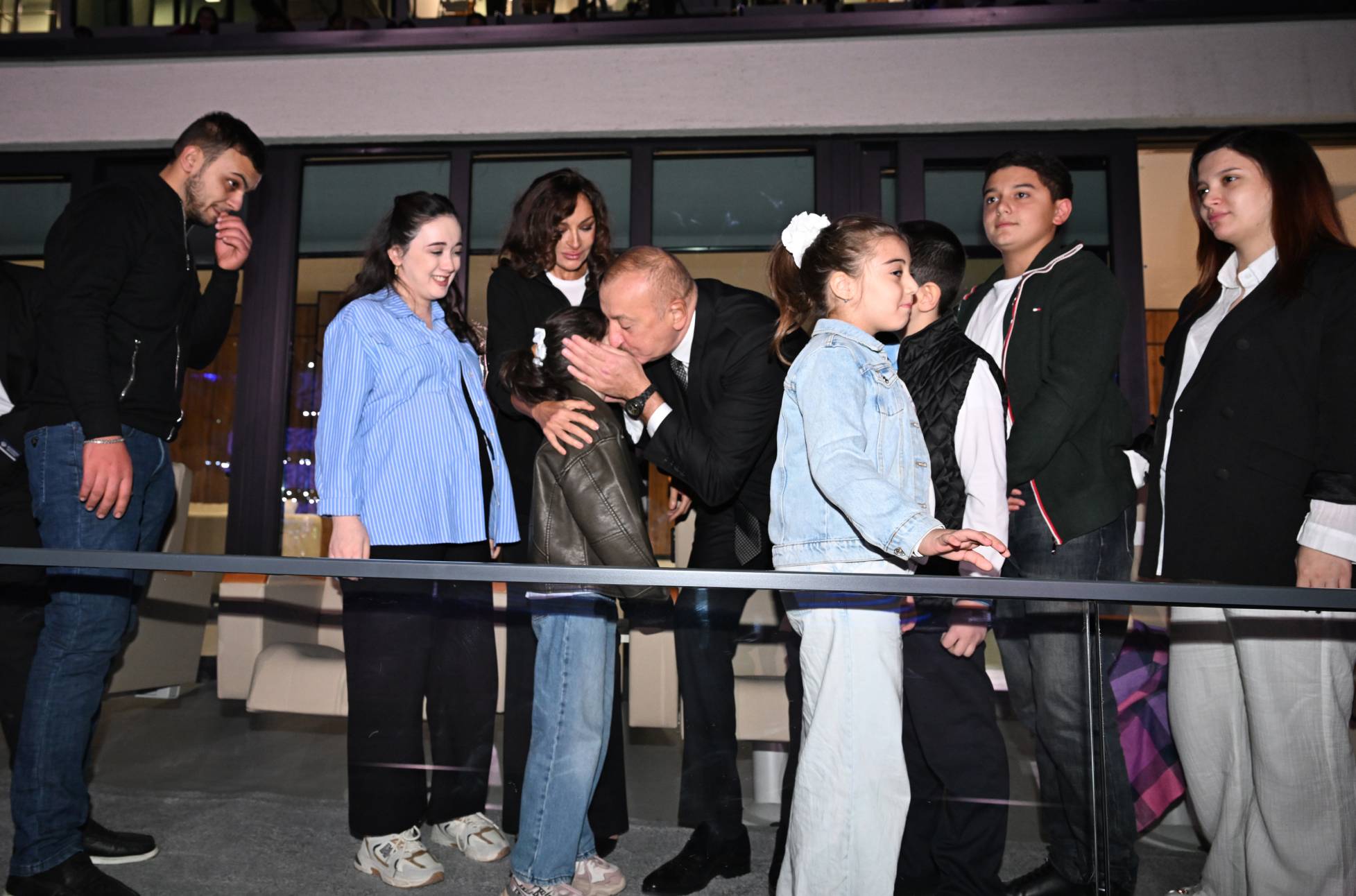 Tədbirdən əvvəl Azərbaycan Respublikasının Prezidenti İlham Əliyev və birinci xanım Mehriban Əliyeva Vətən müharibəsi zamanı Gəncəyə raket hücumları nəticəsində valideynlərini, ailə üzvlərini və yaxın qohumlarını itirmiş, həmçinin xəsarət almış uşaqlarla görüşüblər.