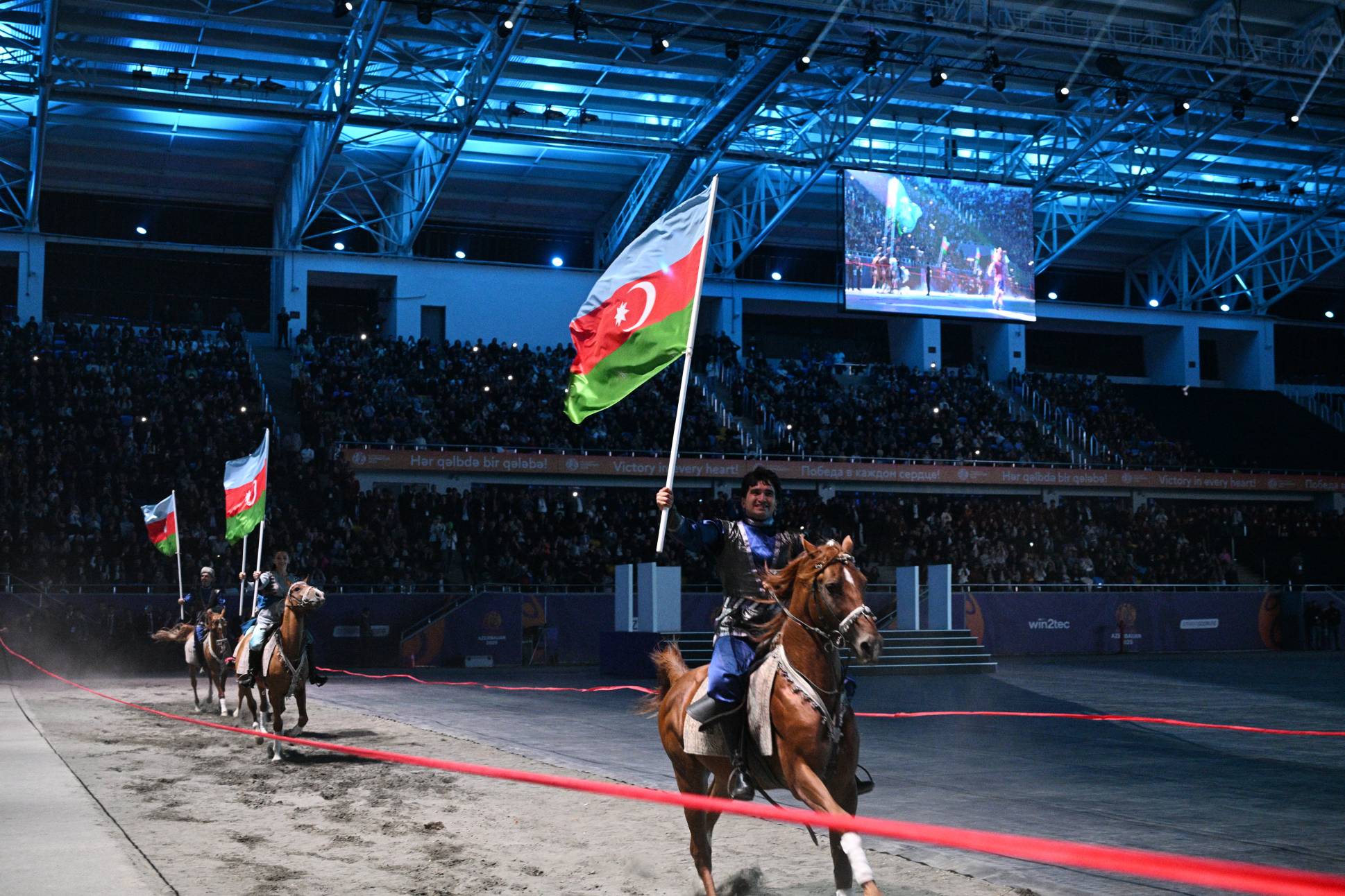 Əvvəlcə Azərbaycan Respublikasının üçrəngli Bayrağı arenaya gətirilib və Dövlət Himnimizin sədaları altında ucaldılıb.